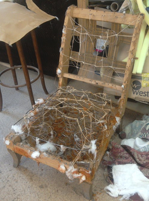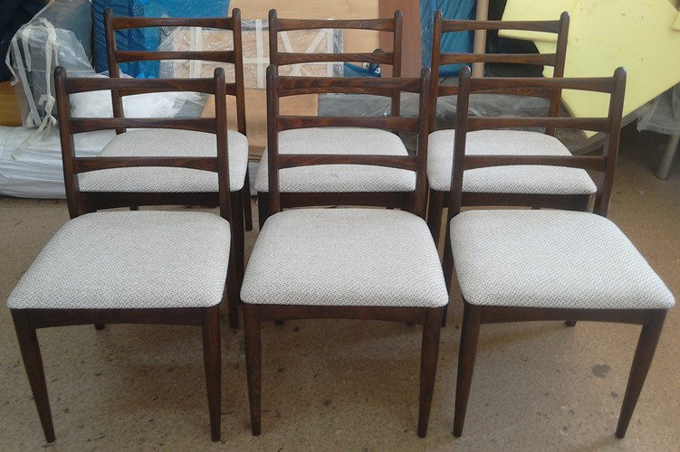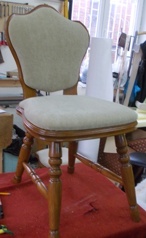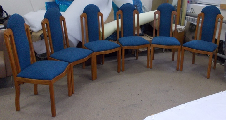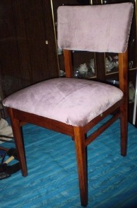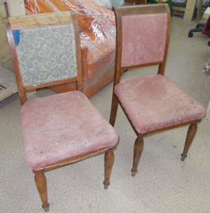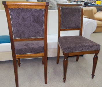 *стулья были собраны буквально из "дров" и получили новую жизнь. Материал обивки - бархат заказчика (слева) и флок на флоке 7-ой ктегории (справа).