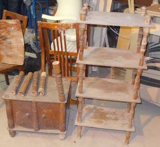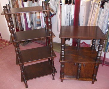 *этажерки полностью отреставрированы и обрели "новую жизнь". Полочки сделаны из новой влагостойкой березовой фанеры. Лакировка - лак Белинка, цвет - Палисандр, глянец