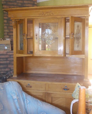 *столешницы серванта и сервировочный столик полностью отреставрированы, особо поврежденные элементы восстановлены с помощью дубового шпона.