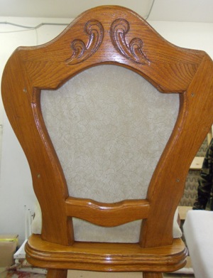 *стулья из натурального дуба испачкарнные маслянной краской, пролежавшие не один год в сыром гараже отреставрированы и получили "вторую жизнь". Лакировка - Белинка цвет "Полисандр" глянец, обивка - гобелен заказчика.