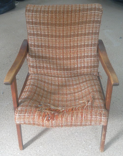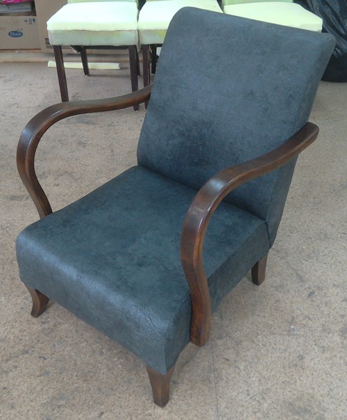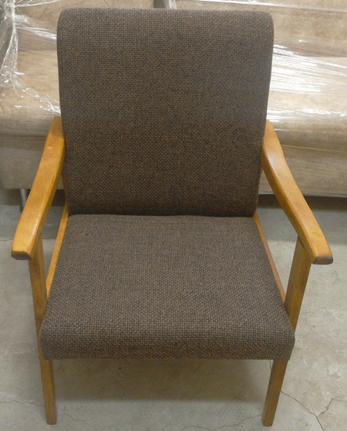 *кресло с деревянными подлокотниками полностью отреставрировано. Перетянуто в современную рогожку с крупной текстурой.