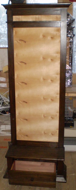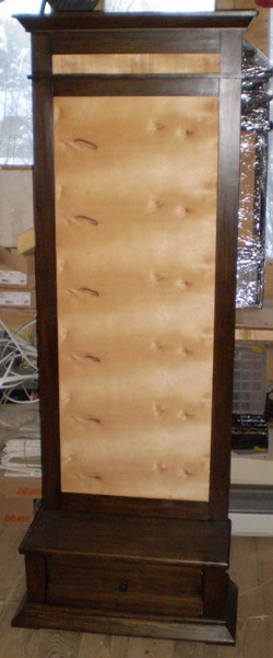 *элемент прихожей полностью отреставрирован, покрыт матовым лаком, магкие части перетянуты в велюр 7-ой категории