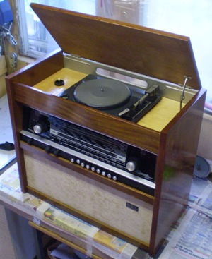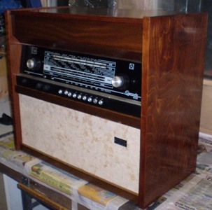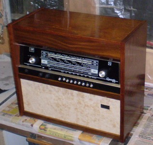 *сильно поврежденые боковые панели заново шпонированы и покрыты лаком с высоким глянцем, заменена ткань динамика.