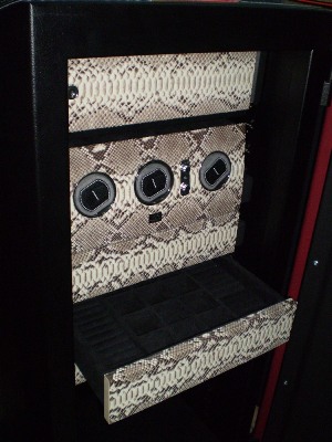 Вставка может исполняться из различных материалов, как натуральных - массив ценных пород дерева (дуб, лиственница), так и искусственных. Каждое наполнение сейфа разрабатывается индивидуально, исходя из пожеланий заказчика и размеров сейфа. Количество ящиков и их наполнение оговаривается после предварительного замера сейфа. Ящики онащаятся направляющими скрытого типа BLUM (производство Австрия). В редких случаях используются направляющие другого типа. Для внутренней и внешней отделки могут использоваться различные материалы: искусственная замша, искусственная кожа, натуральная кожа, кожа экзотических животных (крокодил, анаконда, страус, игуана и др.). Срок изготовления от 2-х недель до 3-х месяцев. Стоимость вставки зависит от используемых материалов, количества ящиков и сложности их наполнения. Раздел "Вставки в сейф под ювелирные изделия, декорирование сейфов"